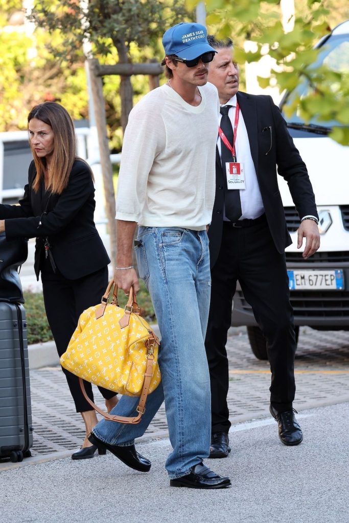 De echte breuk situeert zich elders, met name bij het dragen over de schouder, een gebaar dat lange tijd exclusief met de vrouwelijke garderobe werd geassocieerd. Jacob Elordi heeft dat perfect begrepen. Zonder hiërarchie wisselt hij een citroengele Louis Vuitton Keepall af met een mini Chanel-tas in denim, en vervaagt zo bewust de gendergrenzen. Lang voor hen effende Pharrell Williams al het pad, door de handtas tot een essentieel onderdeel van zijn imago te maken.
