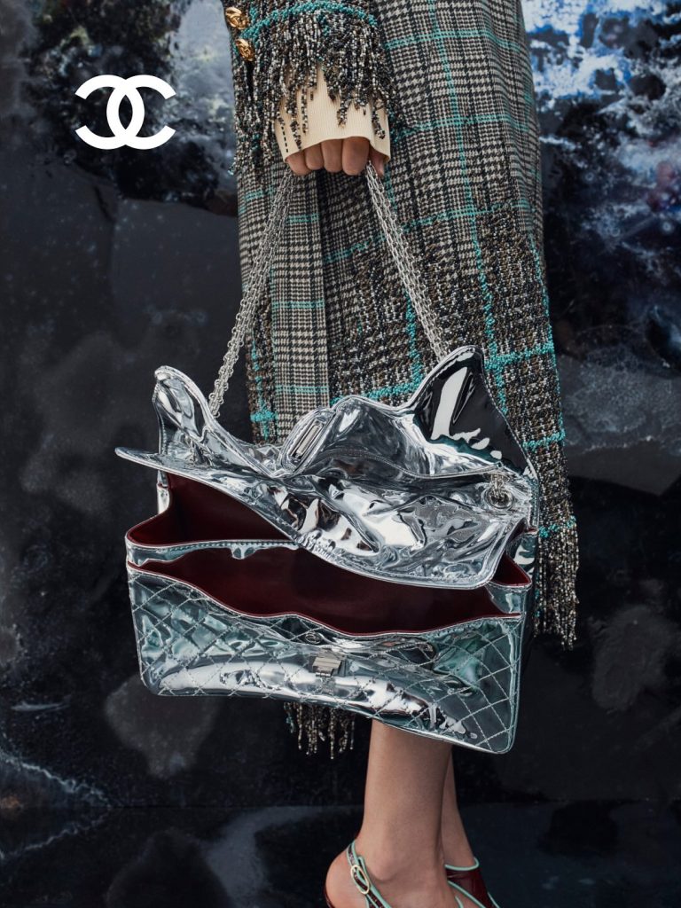 Bij Chanel tekent Mathieu Blazy voor de lente zomer 26 collectie onder de koepel van het Grand Palais een opvallende binnenkomst. Voor zijn eerste voorstel aan het hoofd van het huis met de camelia buigt hij zich eveneens over het thema tijd. En wat is geschikter dan een herinterpretatie van de Timeless, letterlijk tijdloos. Onder de artistieke leiding van de Frans Belgische ontwerper verschijnt de iconische tas open en vervormd. Bijna alsof hij vergeten werd op de bodem van een vochtige kast. Met deze nieuwe versie van de Timeless presenteert Blazy zijn eigen visie op schoonheid en bewijst hij tegelijk dat een Chanel tas, ongeacht haar staat, met trots gedragen kan worden.