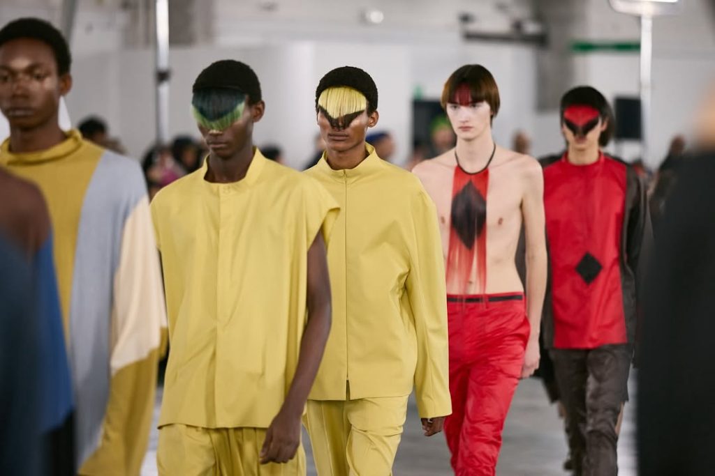 Bij Rick Owens, Kiko Kostadinov en LOVERBOY vallen felle lokken over de ogen, waardoor het gezicht en bij uitbreiding het kledingstuk vervormd wordt waargenomen. Haar fungeert hier als visueel filter, vervaagt referenties en versterkt de dramatische kracht van de looks.