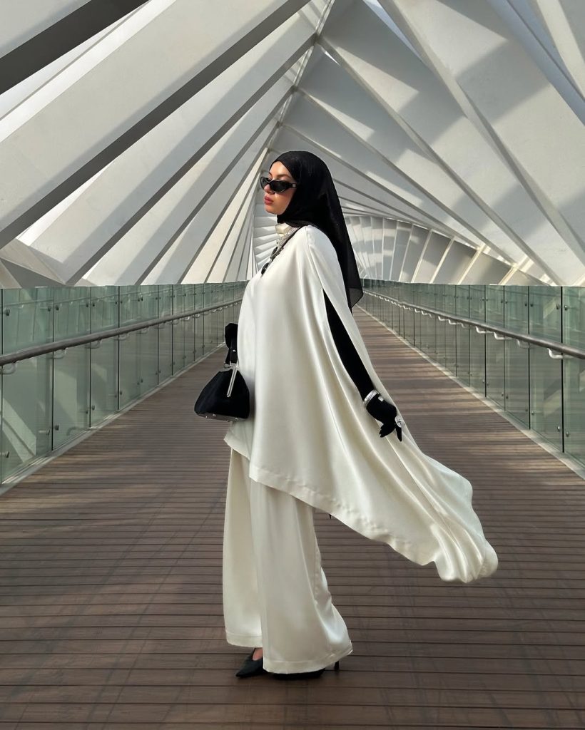 Het Indonesische label Nada Puspita laat florale prints en vloeiende lijnen samensmelten tot een delicate esthetiek die het hele jaar door een lentegevoel oproept. Het Franse merk Soutoura, gespecialiseerd in abaya’s, geeft traditionele codes een eigentijdse twist met striksluitingen die doen denken aan de adidas New Chinese-jas. Vanuit Koeweit omarmt Roqaia Fashion House een uitgesproken quiet luxury-esthetiek die zowel een Westers publiek aanspreekt als vrouwen uit de Golfregio weet te verleiden. Het Amerikaanse label Summer Evenings speelt met draperieën, pasteltinten en asymmetrie, en brengt abaya’s met een moderne flair die vooral bij een jongere generatie in de smaak zullen vallen.