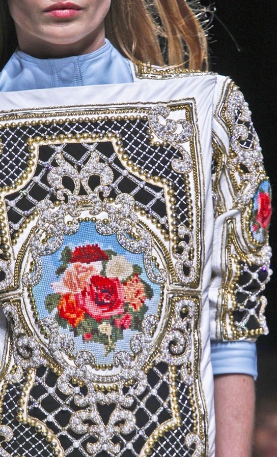In de jaren 2010 onderscheiden zijn silhouetten zich door brede schouders, sterk gecentreerde tailles en rijk geborduurde details. Deze beheerste weelde maakt van elke jurk en elk kostuum een scenografie van vrouwelijkheid. Rousteing ontwerpt geen kledingstukken: hij creëert moderne harnassen.