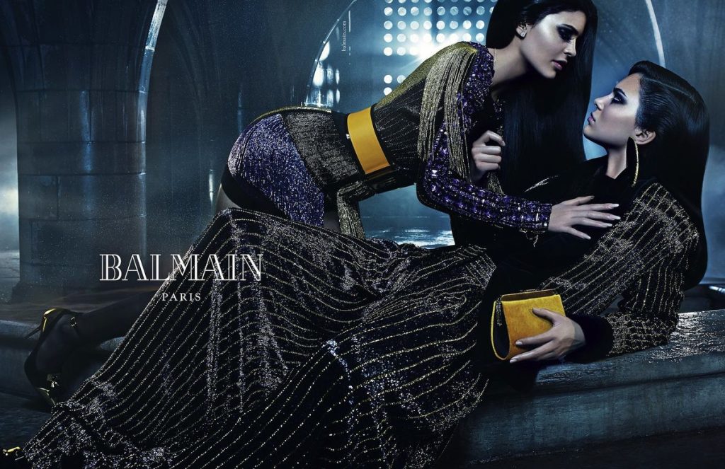Het seizoen daarop worden de Jenner-zussen de nieuwe gezichten van Balmain. Een strategische én visionaire keuze die “familiale geest” combineert met een gedurfde communicatiestijl. Hun impact is tweeledig: ze versterken de opmars van influencers in de mode én vergroten de zichtbaarheid van de jonge ontwerper. Met de Balmain Army herdefinieert Rousteing de communicatieregels van een couturehuis: elke beroemdheid wordt een levende ambassadeur, zowel online als op de rode loper.