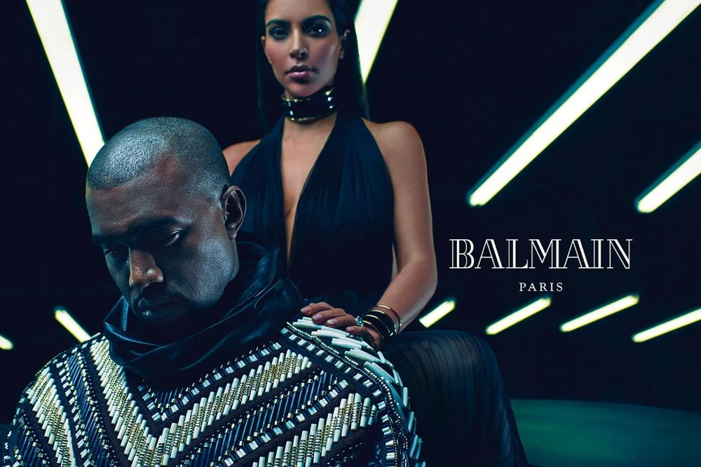 Maar deze “army” is veel meer dan een zorgvuldig samengesteld casting. Ze weerspiegelt de vele invloeden van Rousteing én zijn uitzonderlijk instinct. Visionair als hij is, kleedt hij Kim Kardashian op een moment dat samenwerkingen met influencers nog nauwelijks geaccepteerd zijn in de high fashion. Zij wordt een ware muze: ze loopt shows, en poseert voor de mannen-campagne Lente-Zomer 2015 naast haar toenmalige echtgenoot Kanye West, gefotografeerd door Mario Sorrenti.