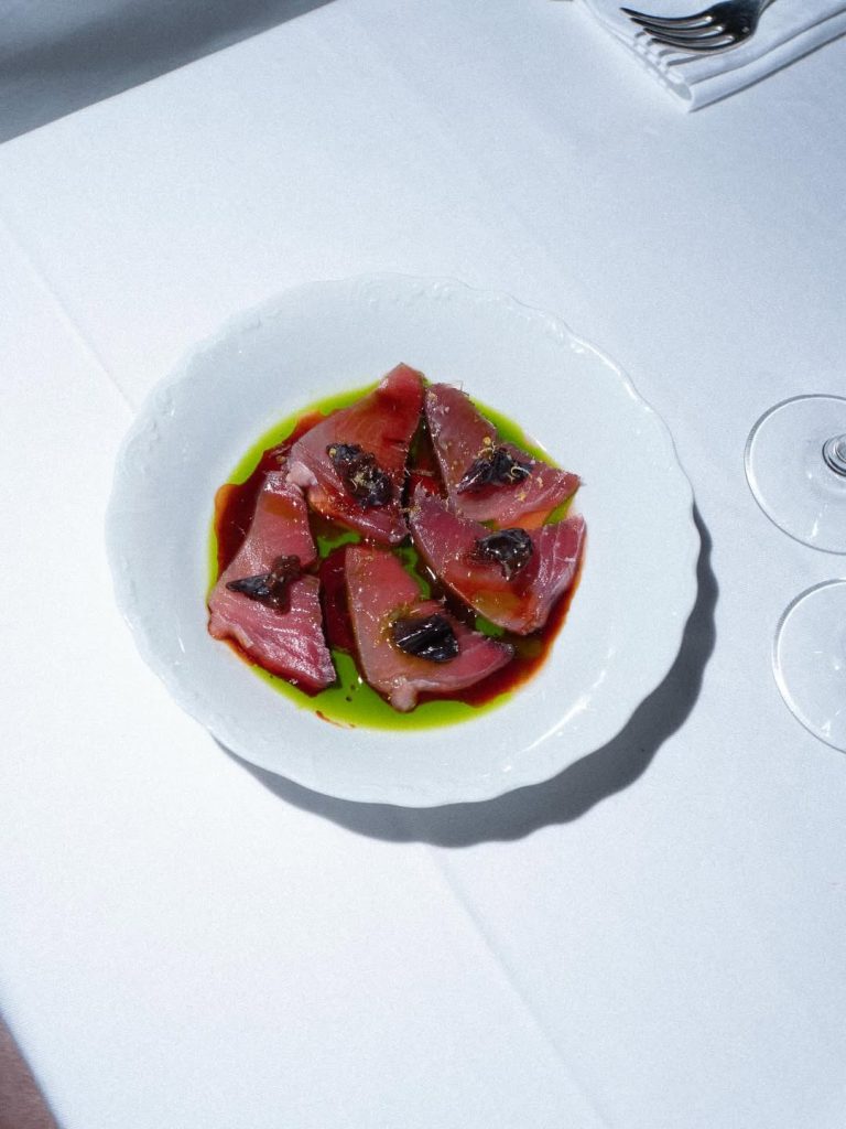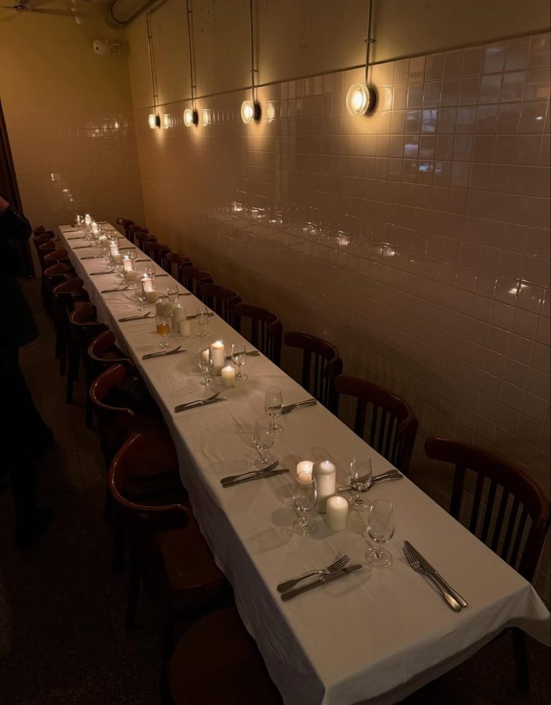 L’Oursin, sinds afgelopen zomer een van de meest begeerde adressen, cultiveert een warme, gedeelde sfeer waar meer wordt uitgewisseld dan enkel gerechten. Gesprekken lopen er vaak door tot een late afsluiter bij Jeannette of Mauri7, twee nachtelijke toevluchtsoorden waar mode en film elkaar kruisen. Tijdens de vorige Fashion Week werden er zelfs figuren als model Alex Consani en zangeres Charli XCX gesignaleerd.